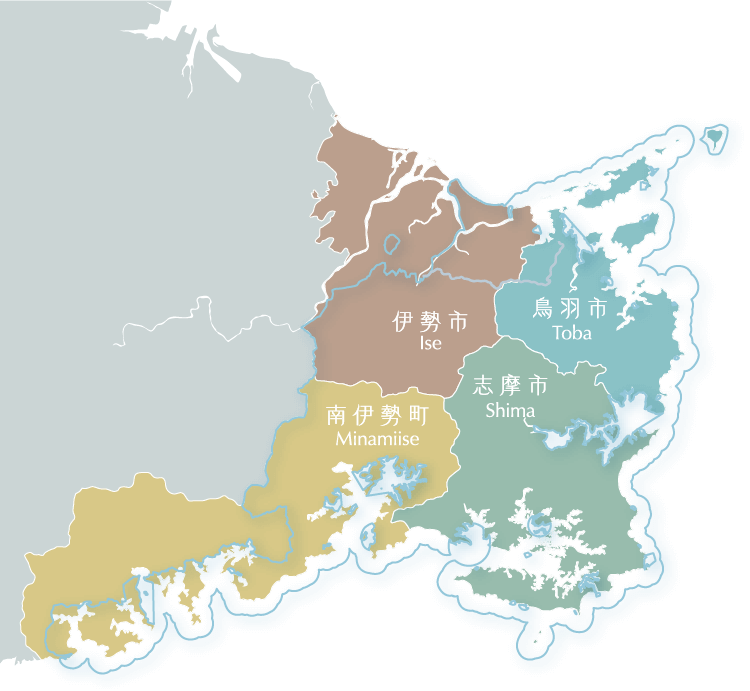 三重県の南東部に位置する伊勢志摩国立公園は、伊勢市・鳥羽市・志摩市・南伊勢町の3市1町で構成され、伊勢神宮とその背後に広がる森林を中心とした内陸エリア、リアス海岸に代表される海沿いのエリアという、ふたつの表情をあわせ持つ国立公園です。
