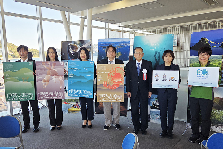 今年で8回目となる石原円吉賞表彰式に合わせて、Happy Birthday伊勢志摩国立公園イベントを開催。鳥羽市ゆかりの推理小説家の江戸川乱歩にちなんで、名(メイ)探偵に扮したPR大使「ラッコのメイちゃん」のイラストや、80周年記念ロゴマーク、ポスターをお披露目しました。
